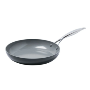 Ceramic non-stick coating free from PFAS; induction compatible; scratch-resistant.