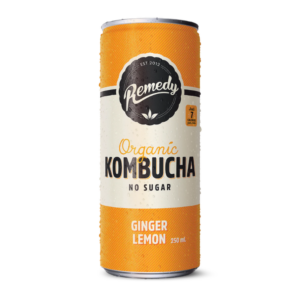 Ginger and lemon organic kombucha with natural probiotics and zingy flavour